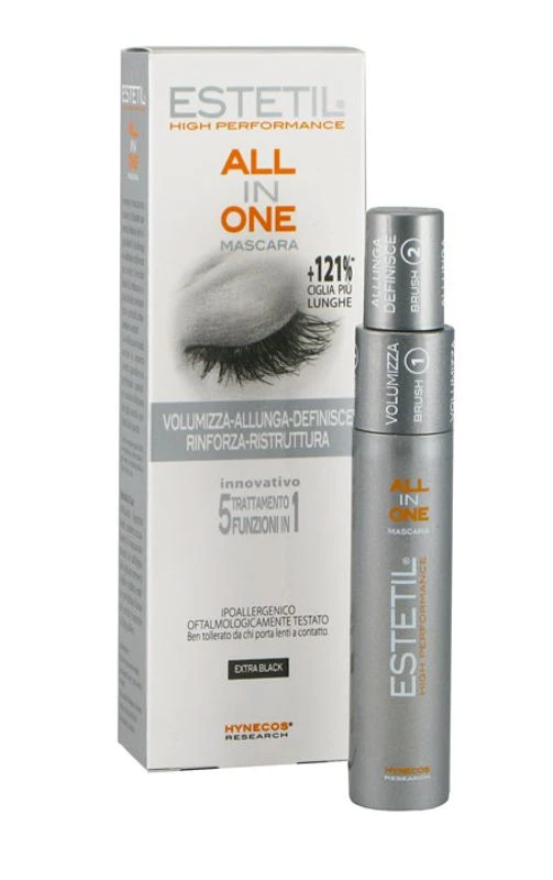 Descrizione e Modo d’Uso Estetil Mascara All in One volumizza allunga definisce rinforza