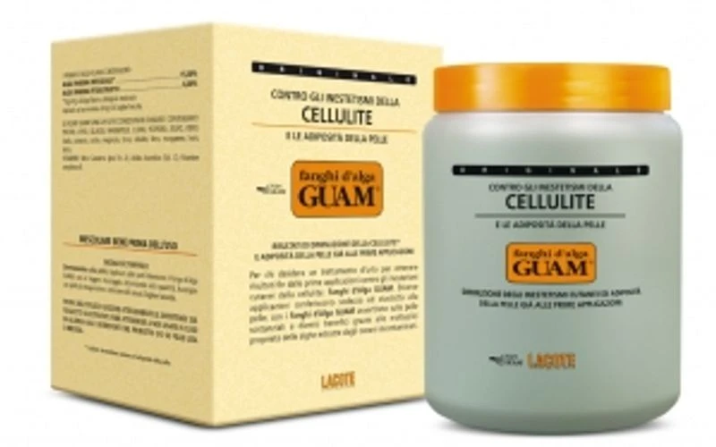 Alghe GUAM, Argilla, fitoestratti di Edera, Ippocastano, Fucus, oli essenziali di Limone e Origano. Attivi contro gli inestetismi cutanei della cellulite.