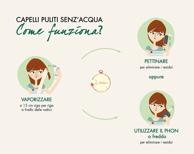 Permette di distanziare i lavaggi e di avere capelli puliti in poco tempo (solo 2 minuti!).