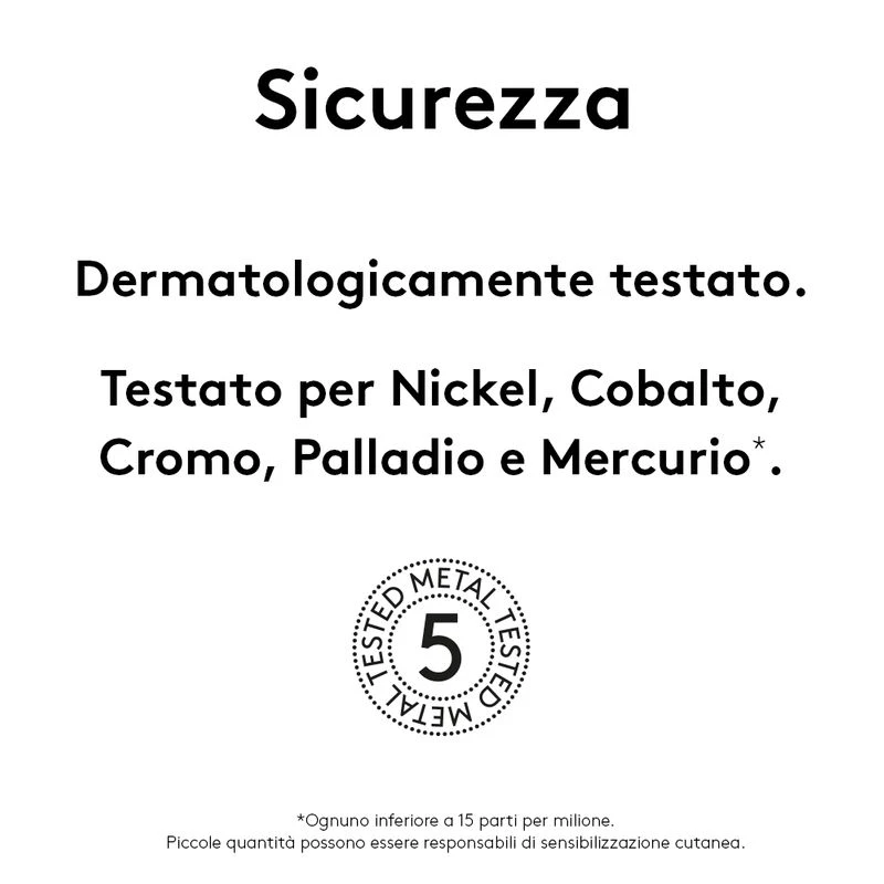 Testato per nichel, cobalto, cromo, palladio e mercurio.