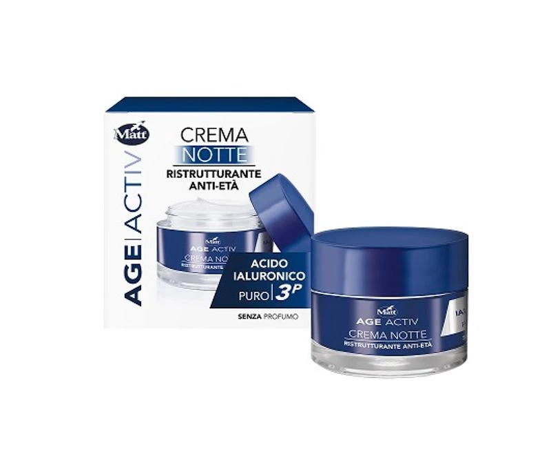 Descrizione e Modo d’Uso Matt Age Activ Crema Notte Viso Acido Ialuronico puro 3P Ristrutturante Anti-Età 50ml