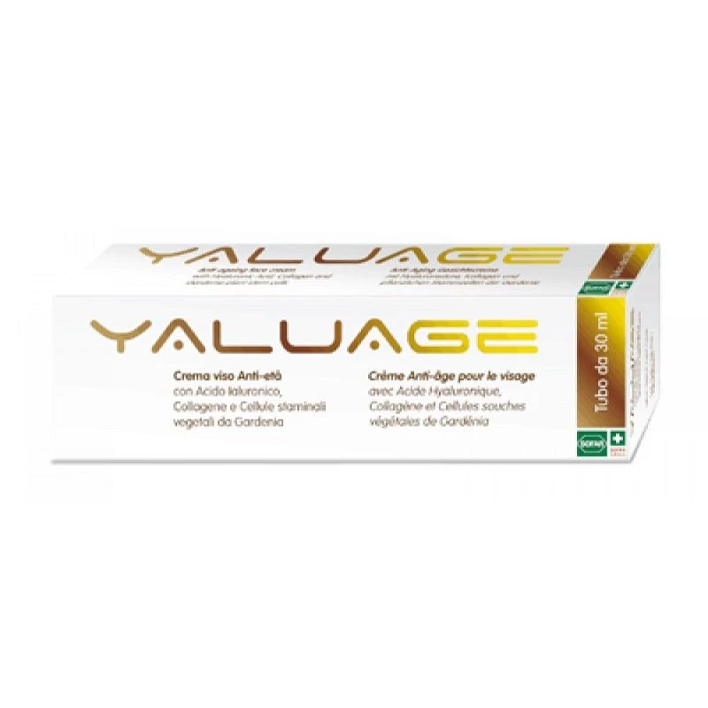 Yaluage crema viso è stata pensata per agire sui due diversi processi di invecchiamento in quanto sono presenti filtri solari vitamina E con attività antiossidante, acido ialuronico, collagene, cellule staminali vegetali di gardenia, con azione mirata anti-aging.