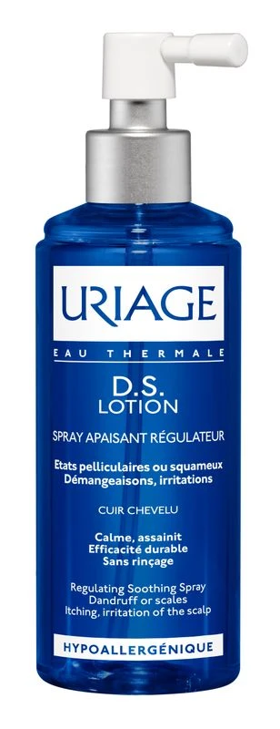 D.S. Lozione è una soluzione ad azione regolatrice, risanante, lenitiva. Modera il rinnovamento cellulare, elimina le squame e calma il prurito del cuoio capelluto. La sua formula è costituita dal Brevetto TLR2-Regul® (anti-irritazioni), dall’acqua termale di Uriage (lenitiva), dal Piroctone olamina (dermopurificante) e da un ingrediente attivo specifico: l’olio essenziale di Cade (anti-squame). Uriage D.S. Lozione per uso quotidiano, non lascia i capelli grassi e li rende docili al pettine. Il cuoio capelluto ritroverà rapidamente il suo naturale equilibrio e apparirà così più sano e senza forfora.